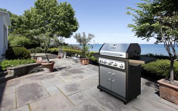 From appetizers to main courses to side dishes, this Dyna Glo 5-burner natural gas grill does it all (you must have natural gas plumbed out to your patio or deck in order to use this grill). Its Dyna-Power cooking system features a steel, double-wall firebox that houses five stainless steel burners, delivering 55,000 total BTUs. Add the stainless steel, 12,000-BTU side burner and 12,000-BTU rotisserie burner, and you’ve got a complete grilling/cooking solution that ensures fast, high and consistent heat over 764 square inches of cooking space.